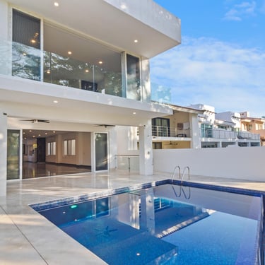This magnificent private home offers 3 bedrooms, 4.5 full bathrooms with a very nice size studio at the ground floor. It features an exquisite pool with an open view over the golf course. New and modern architecture, open spaces, high end finishes with a unique style of elegance, good taste, and comfort. This home is walking distance to Marina Vallarta's best restaurants, cafes, boardwalk, and beach.